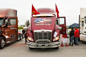Glen designed the graphics, and Stripes & Stuff Graphic Signs in Springfield, Mo brought the truck’s look to life. This is the 11th truck Glen has driven since joining Prime 28 years ago, and it came to a surprise to his wife of 37 years, who didn’t expect the new rig to have a military theme.